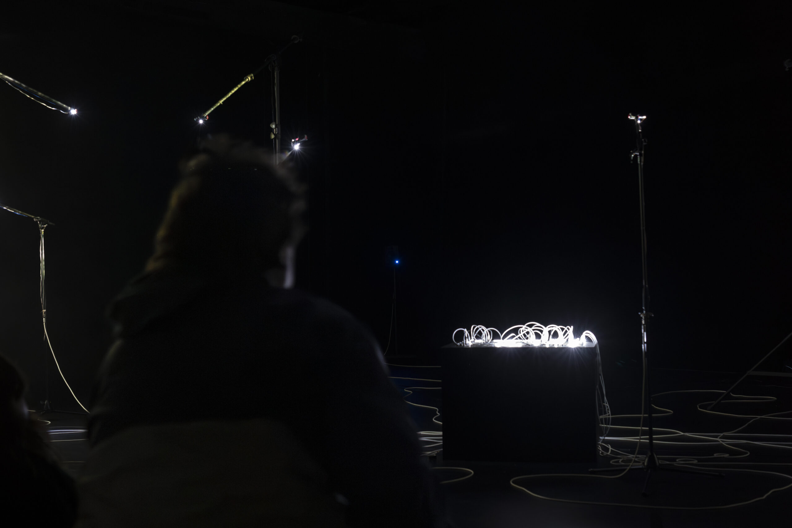 Dans ses projets, le son est utilisé comme matériau permettant une exploration de la matière, de l’espace et du phénomène électrique au sens large, au travers de vibrations à la fois sonores et mécaniques. Outils indispensables à ses recherches, les synthétiseurs qu’il construit depuis 2019 occupent différentes places au sein de ses installations en manifestant, de multiples manières, l’ensemble des chorégraphies électriques qui font la trame de ses projets.