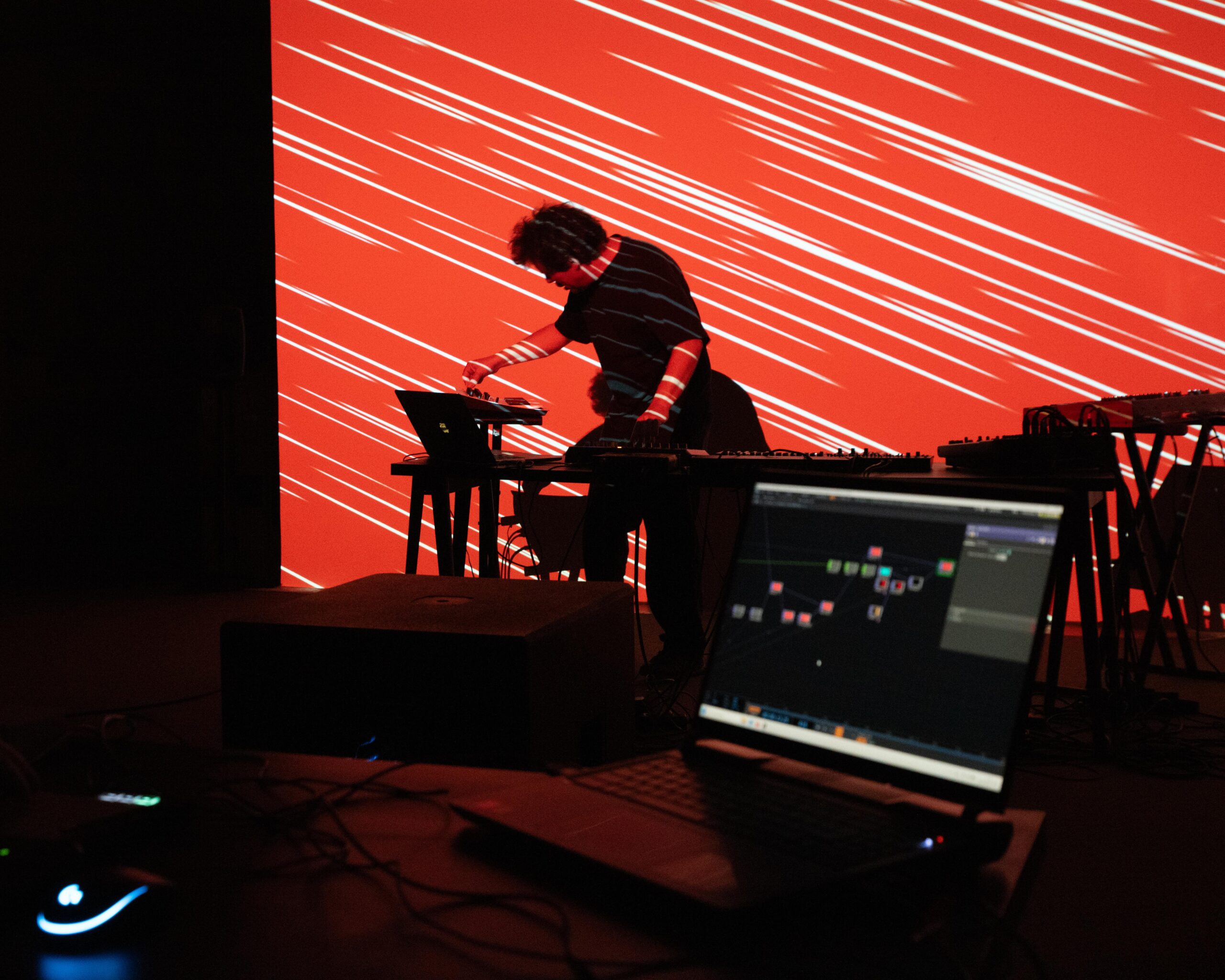 Starting from a relationship between music and image, the two artists explore the idea of the “point,” whether it be a pixel, a unit of tempo, a rhythm, or a note. The phenomenon of “murmuration” will be a strong element of this research, between precise A/V synchronization and total freedom through improvisation coming from both the musician and the visual artist. Like a flock of birds moving in unison or a migratory bird flying solo.
