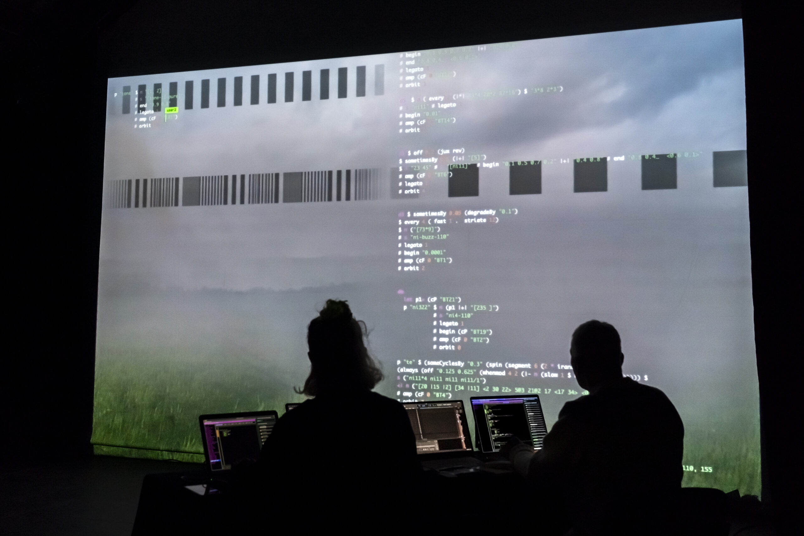 Performance de live coding et de visualisation en temps réel, où des formules algorithmiques génèrent un paysage [...]